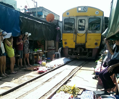 [暢遊泰國] 火車來了,快收攤啊!美功鐵道市場