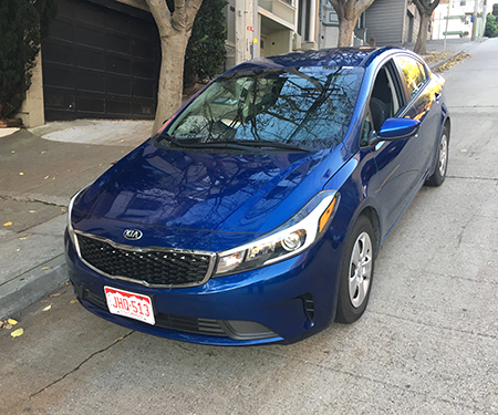 我從沒在美國租過車,原本也沒打算,但今天的行程要跑很多地方,不好意思請朋友開車帶我到處跑,所以我還是在台灣辦了國際駕照(250元),然後在前一晚來租車,對,前一晚,離取車不到10小時之前,因為在美國租車實在太方便了,若你英文OK,上網租車輕鬆又快速。我是在 RentalCars.com 這個網站租的,他們是 Priceline 集團旗下的租車平台網站,安心有保障,價格也不會貴到哪去,我只用了約5分鐘就租好了,而且取車地點就在我民宿同條街上,走過去五分鐘。我在 Alamo 租車公司取車,沒買任何保險,一天費用才美金 24.53,台幣 700 多,是不是有夠便宜!這家 Alamo 的地址是 750 Bush St. 早上七點開門,晚上六點關門,他是以24小時制來算,如果你八點取車,隔天八點前還都算「一天」,不過你就得想辦法停車過夜,若你當天六點來不及還車(我就因為堵車差點來不及),你可以在七點前開到 340 O'Farrell St. 還。如果你當天到現場租會比較貴,利用平台網站 RentalCars,或是租車公司的官網下單預訂,會便宜很多,所以甚至連現場的櫃檯人員都會建議你在線上訂,所以基本上,租車公司的店面都僅是取車/還車用。