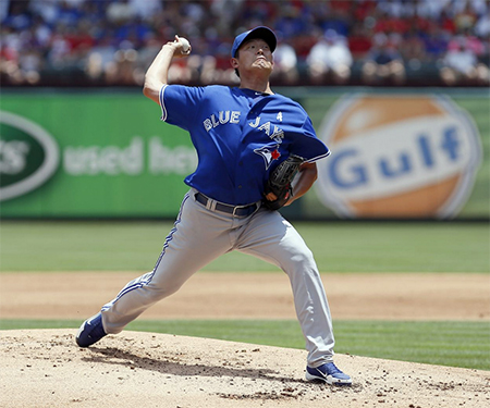 王建民今天表現出乎意料的好,感覺當年的身手和自信又回來了,這是我在國民隊沒有見過的,好幾次成功化解危機走回場邊,嘴上都隱藏不住笑意,話說人運勢好的時後,山都擋不住,何況是五連敗的遊騎兵,先發打線毫無串連氣勢,整場唯一的機會是在四局下一人出局、一三壘有跑者,Nelson Cruz擊出三壘邊線的強勁平飛球,被Encarnacion美技接殺,整個反攻氣勢又活生生被壓了下去,這是我看整場唯一的「危機」了,其餘時間老王彷彿回到了當年19勝的狀態,滾地、滾地、再滾地,兩次的保送也是不太會讓人擔心的那種,整個球路的進壘點得心應手,至少有五次吧,捕手Arencibia都忍不住用手套對他比讚,一回生、二回熟,這次的配球和默契比上場好太多了,而且捕手在打擊上終於有些幫助,不像上一場一樣丟臉。