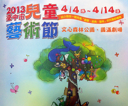 台中市文心森林公園,和其中的圓滿戶外劇場是台中的一大驕傲,我每天開車經過那,所以一有任何風吹草動就會察覺,2013台中市兒童藝術節於4/4~4/14正式在此展開,本想第一時間就衝,可惜連假都在下雨,直到最後一天終於放晴,我們迫不急待啊~